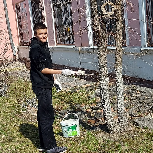 Благодарим учеников 8 Б класса и их классного руководителя Савельеву Галину Александровну за побелку деревьев на школьном дворе!!!